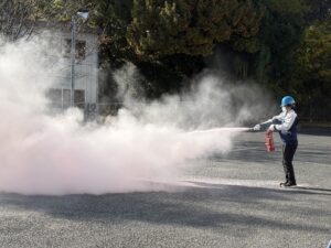二週にわたり夜勤想定も含め、消火器を使用した消火訓練と放水による消火訓練を行い、初めて消火訓練を行った方にはいい経験になったと思います。