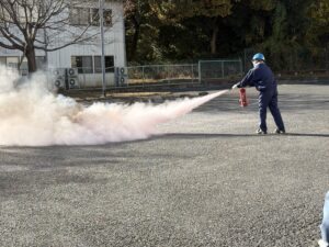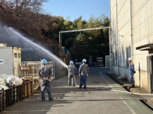 二週にわたり夜勤想定も含め、消火器を使用した消火訓練と放水による消火訓練を行い、初めて消火訓練を行った方にはいい経験になったと思います。